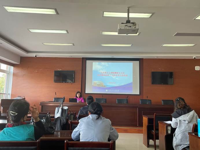 大会分三个阶段进行,首先副院长孙莎岚对学院近期的教学工作提要求,并对即将开始的审核评估专家进校考察工作做出部署,说明了评估期间的注意事项,强调教学纪律,提醒学院教师做好相关教学资料准备、教学管理以及课堂管理。