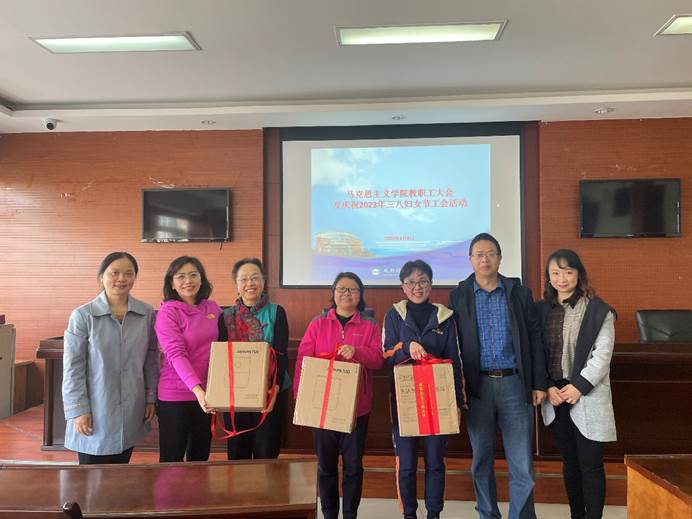 3月8日下午,马克思主义学院召开全院教职工大会及庆祝2023年三八妇女节工会活动,学院全体教职员工出席,大会由学院党委书记谢清明主持。
