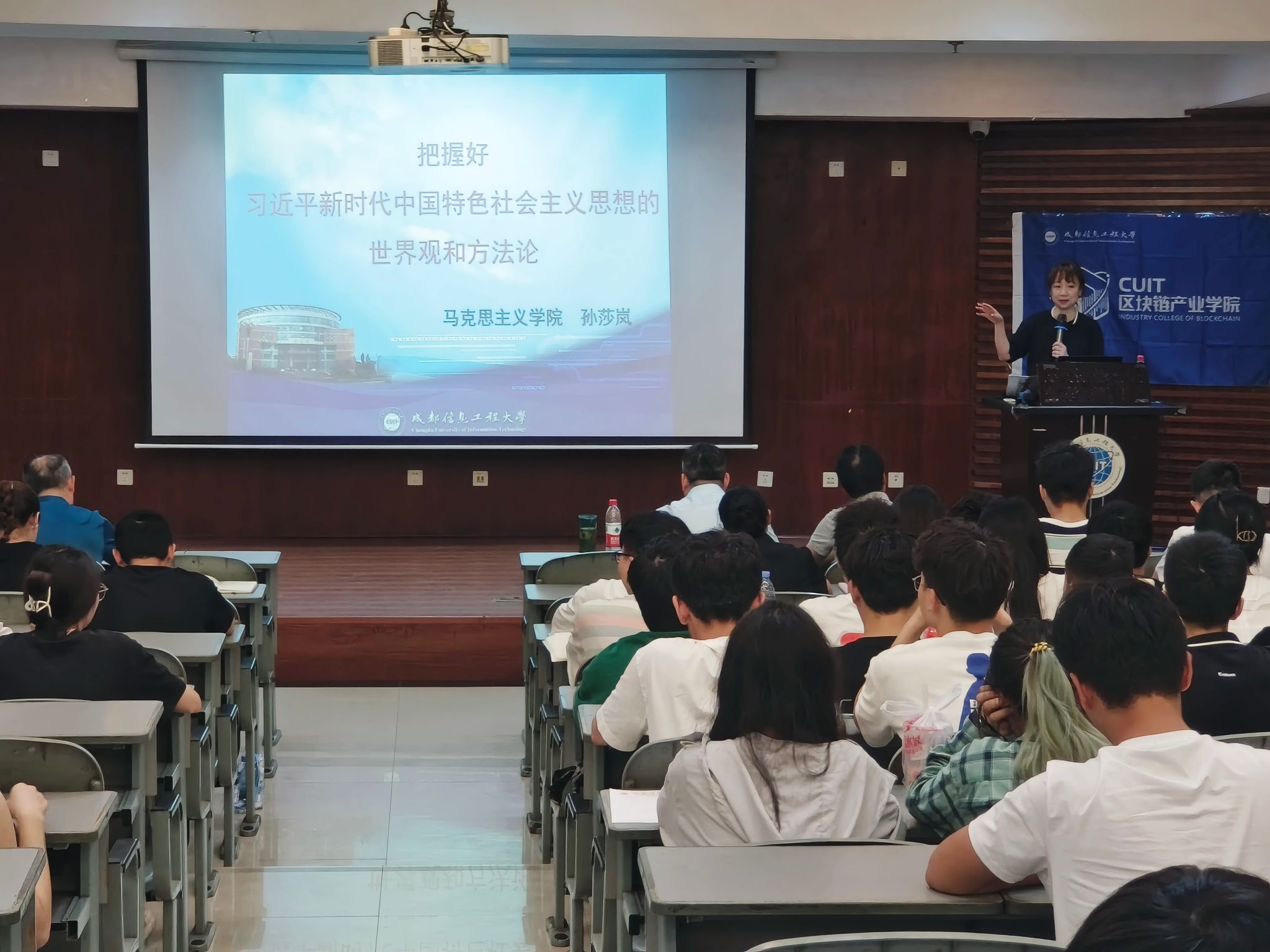 5月30日下午,应区块链学院党委邀请,学校学习贯彻习近平新时代中国特色社会主义思想主题教育理论宣讲团成员、马克思主义学院副院长孙莎岚以《把握好习近平新时代中国特色社会主义思想的世界观和方法论》为题,在学术报告厅为区块链学院师生讲授主题教育专题党课。