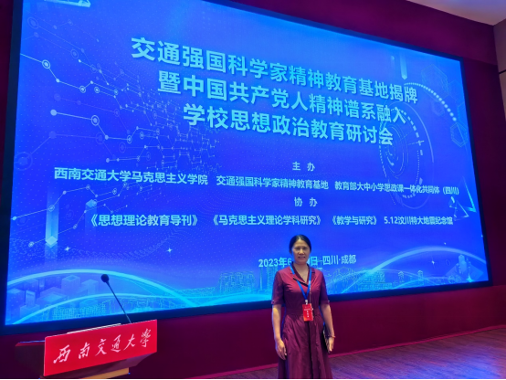 为热烈庆祝中国共产党成立102周年,在全党全国上下深入开展学习贯彻习近平新时代中国特色社会主义思想主题教育之际,6月30日,由西南交通大学马克思主义学院主办,《思想理论教育导刊》《马克思主义理论学科研究》《教学与研究》和5.12汶川特大地震纪念馆协办的“交通强国科学家精神教育基地揭牌暨中国共产党人精神谱系融入学校思想政治教育研讨会”在西南交通大学隆重举行。西南交通大学党委书记余敏明、四川省教育厅二级巡视员杨建国、四川省科技厅科技监督与诚信建设处处长梁刚、四川省科学技术协会调研宣传部调研员李梅和有关负责同志出席大会开幕式,来自全国各地党史党建和思想政治教育领域的专家学者、期刊编辑和相关媒体人员等100余人参加学术会议。我院侯莲梅老师参加了这次会议。
