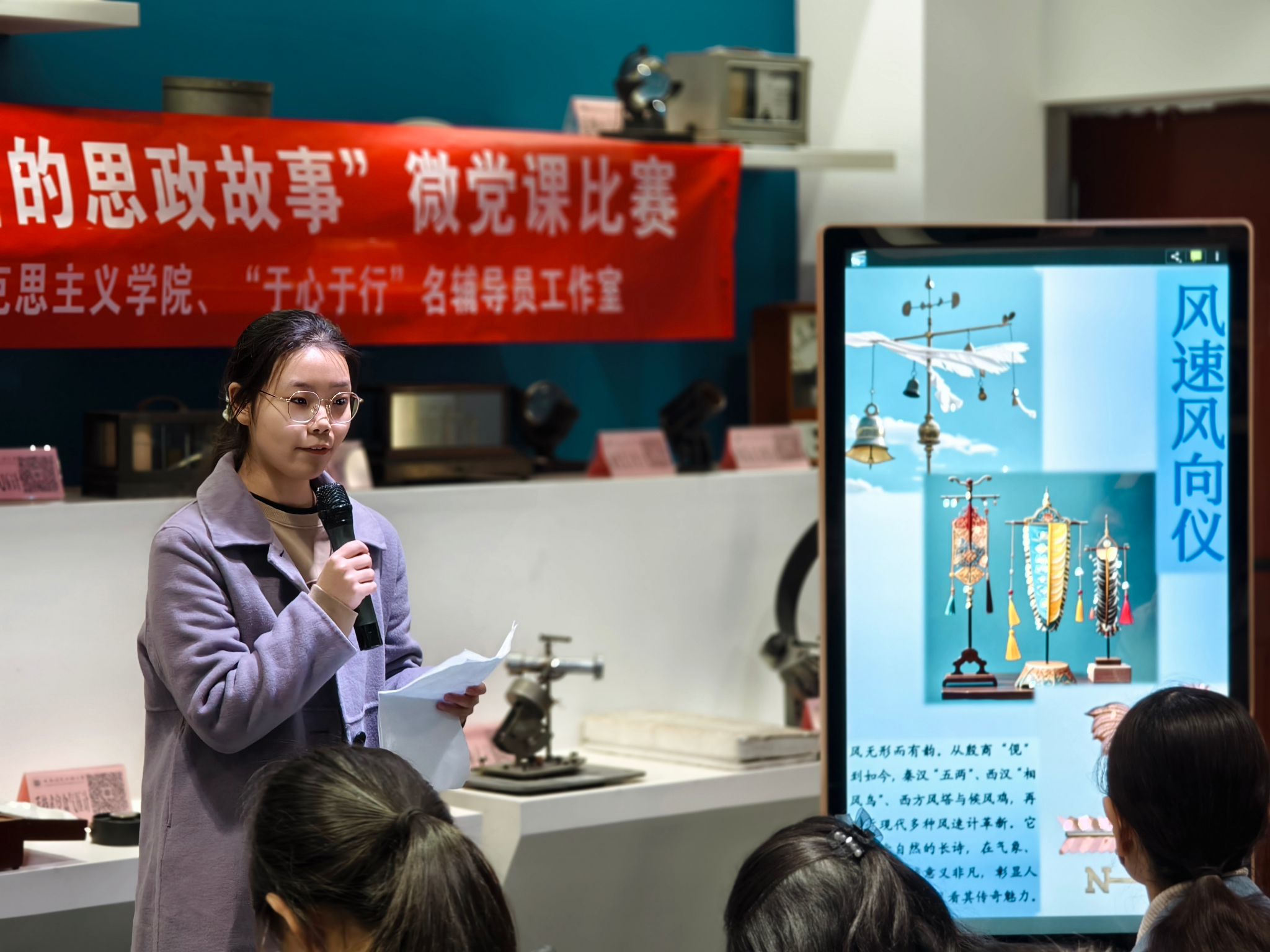 为了发掘收集老一辈气象专家艰苦奋斗的故事,结合学校气象背景气象历史充分挖掘气象仪器背后的故事,打造具有鲜明气象特色的大气探测博物馆里的思政故事。12月5日下午,学校“博物馆的思政故事”微党课比赛在学校大气探测博物馆举行。本次大赛由学校学生工作部(处)主办,电子工程学院(大气探测学院)、马克思主义学院、“于心于行”名辅导员工作室承办。学生工作部(处)阿尔祖古丽·阿卜来提、电子工程学院学生科科长阮丽娜、马克思主义学院形势与政策教研室主任肖艳、大气科学学院团委书记苏露、资源环境学院学生党支部书记江慧为本次比赛评委,学校各学院党员、学生代表参加了此次活动。