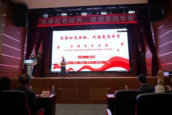 4月3日下午,由光电工程学院(人工影响天气学院)党委、地方高校新工科专业课程思政建设虚拟教研室、大气科学学院党委、资源环境学院党委、电子工程学院党委、文化艺术学院党委、马克思主义学院党委联合主办的第四期四川省课程思政虚拟教研室研讨会暨“乐承红色经典,戏塑爱国华章”主题音乐党课在成信大礼堂隆重举行。成都信息工程大学党委常委、宣传部部长张小红,学生工作处处长龚晓林,各学院党委书记,学生代表200余人参加了会议,会议同步线上直播,100余人聆听了报告。