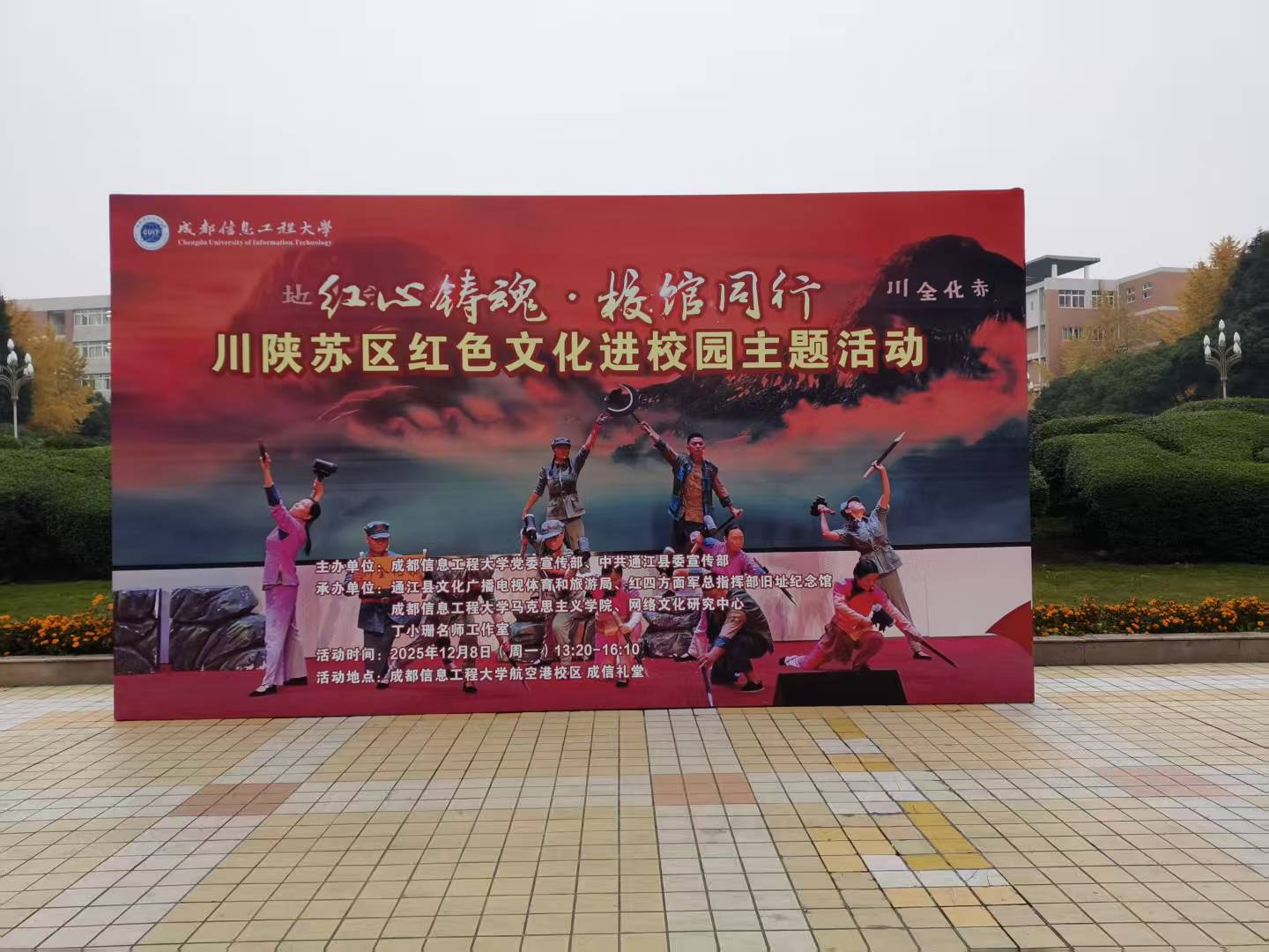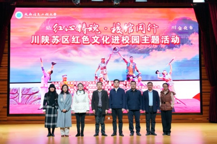 为贯彻落实习近平文化思想,发挥红色资源育人功能、构建“大思政”育人格局、筑牢立德树人根基,12月8日,我校联合中共通江县委宣传部与红四方面军总指挥部旧址纪念馆在“成信礼堂”举行了“红心铸魂·校馆同行”——川陕苏区红色文化进校园主题活动,我校党委副书记杨奇才同志、中共通江县委常委、县委宣传部部长赵树文同志出席了本次活动,我校党委宣传部杜国宏部长和袁华副部长、马克思主义学院丁小珊院长和孙莎岚副院长及其他师生代表430余人,通江县文化广播电视体育和旅游局党组成员王敬同志、红四方面军总指挥部旧址纪念馆馆长庞虎同志及其他职工代表、通江县融媒体中心记者共16人参加了此次活动。