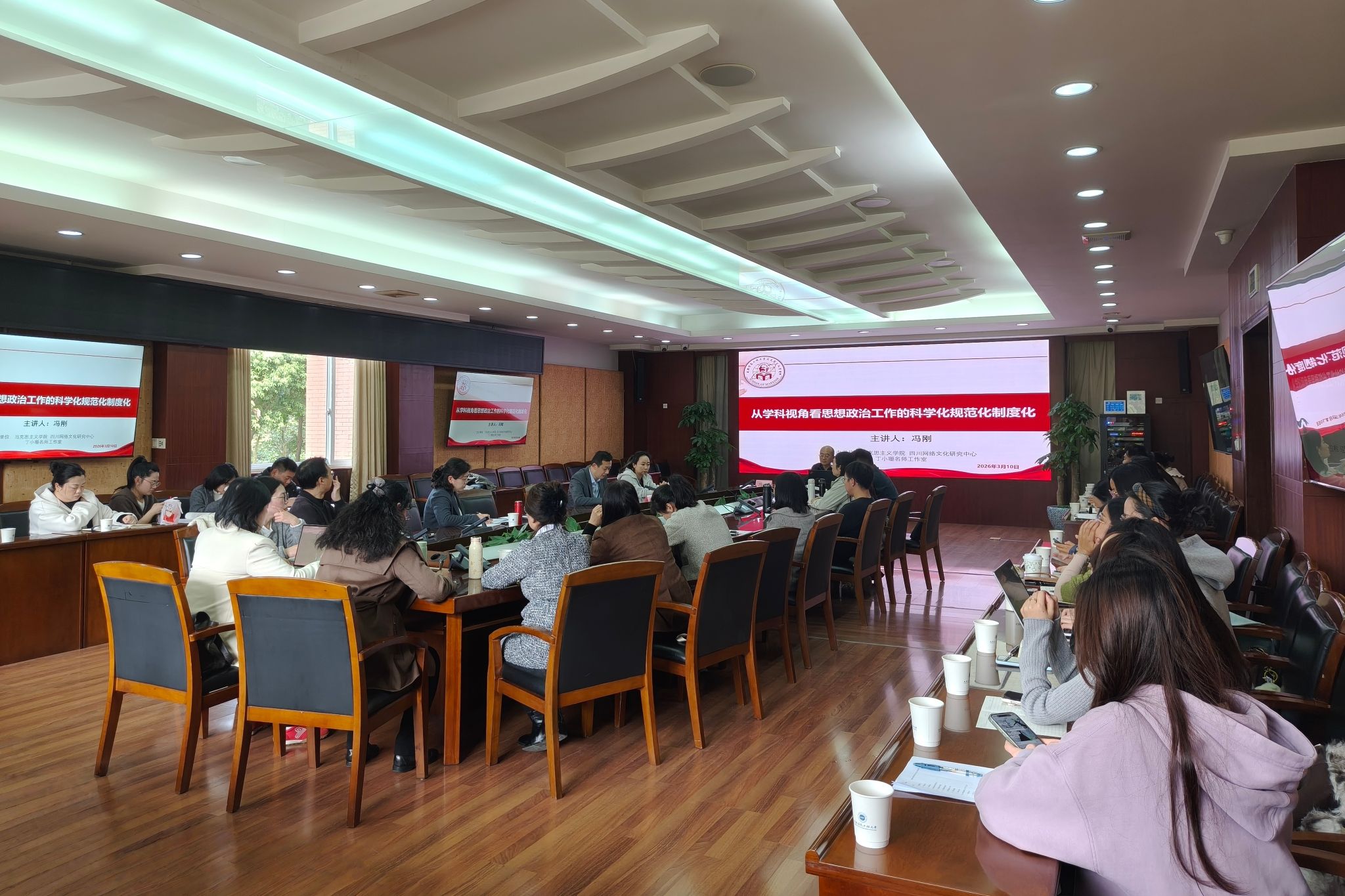 【本网讯】为深入学习贯彻《中国共产党思想政治工作条例》(以下简称:《条例》),精准把握新时代思想政治工作规律,推动学校思想政治工作与马克思主义理论学科建设深度融合、高质量发展,3月10日,我校马克思主义学院、网络文化研究中心、丁小珊名师工作室邀请北京科技大学思想政治研究院院长、教育部思政司原司长冯刚来我校,作题为《从学科视角看思想政治工作的科学化规范化制度化》的专题讲座。讲座由学校党委副书记杨奇才主持。学校马克思主义学院教师,相关学院学生科科长、分团委书记,学生工作部、校团委全体工作人员及马克思主义学院研究生代表参加讲座。