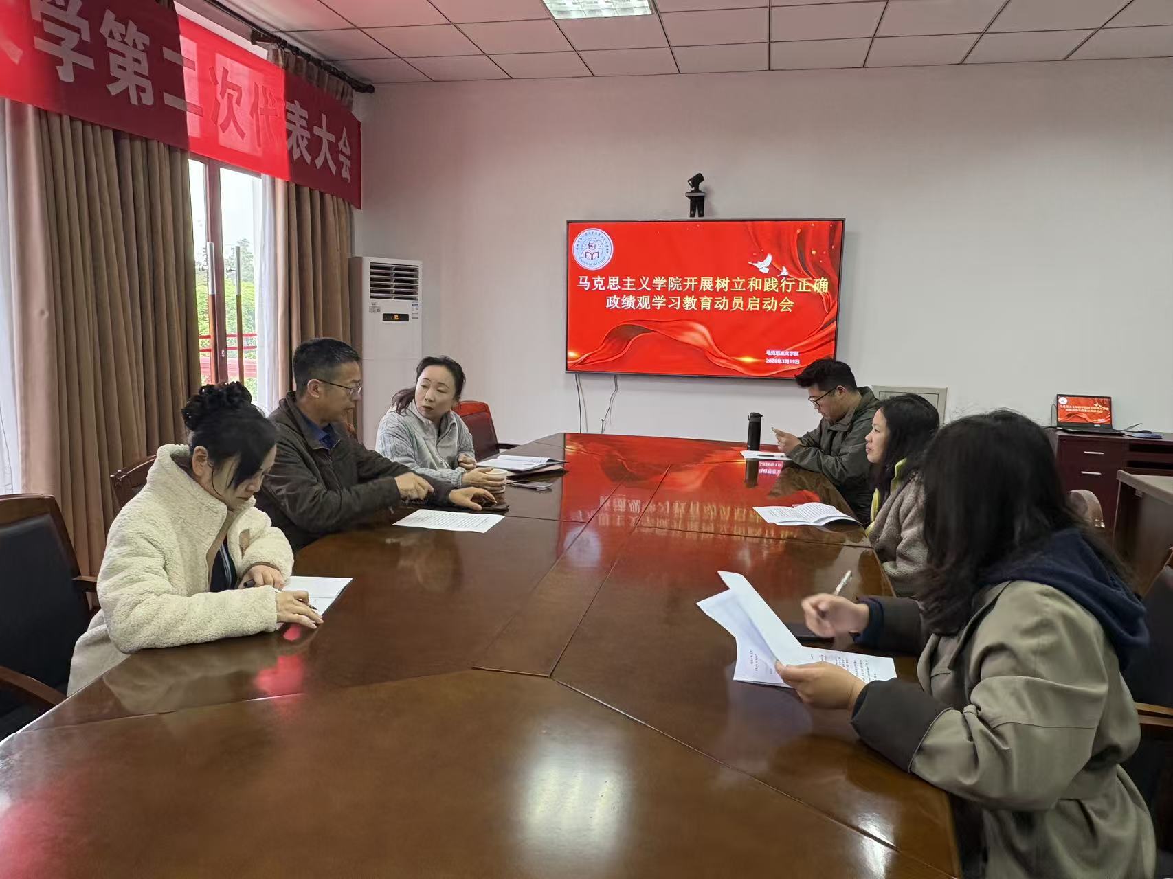 会上,谢清明书记首先传达了党中央《关于在全党开展树立和践行正确政绩观学习教育的通知》精神及学校党委相关实施方案要求,结合学院实际,对《马克思主义学院开展树立和践行正确政绩观学习教育的实施方案》进行全面解读和详细工作布置。他强调,本次学习教育是全院当前和今后一段时期的重要政治任务,覆盖全院各级党组织和全体党员、干部,全体党委委员要提高政治站位,深刻认识开展学习教育的重大意义,以高度的政治自觉、思想自觉、行动自觉推动学习教育走深走实。